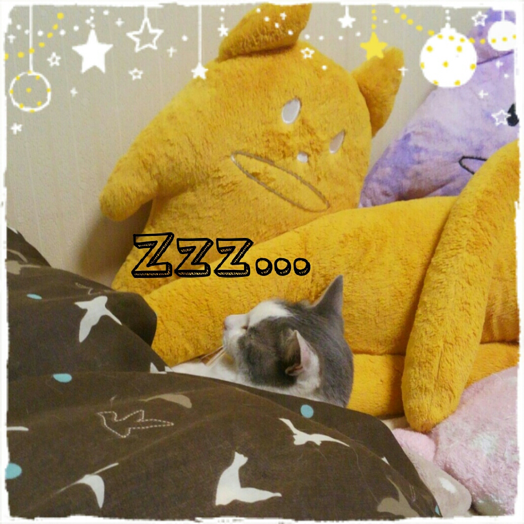 ふとベットをみると、猫が独りで布団に入ってます(笑)