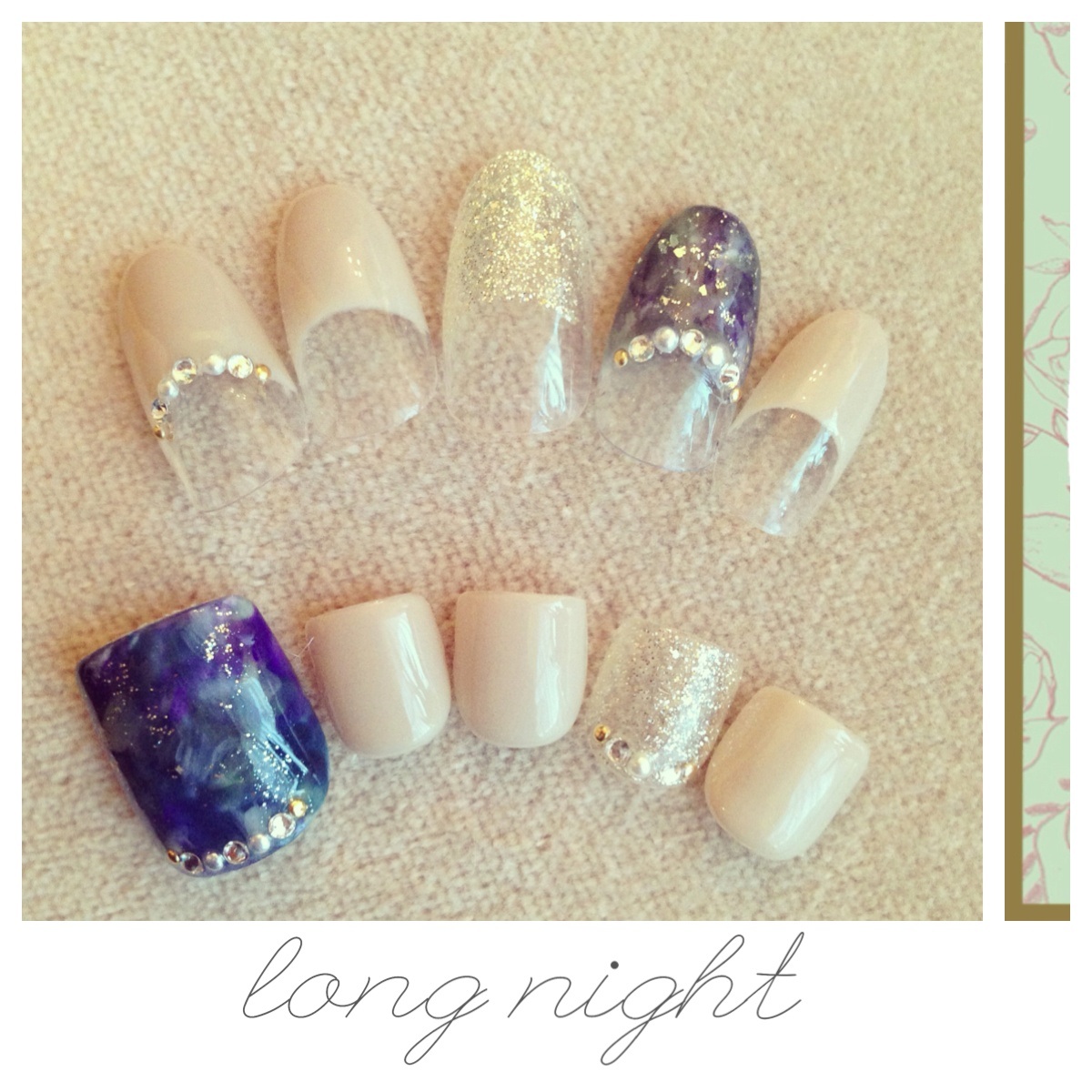 ブルーとパープル、ゴールドのラメで星空のような仕上がりになります☆