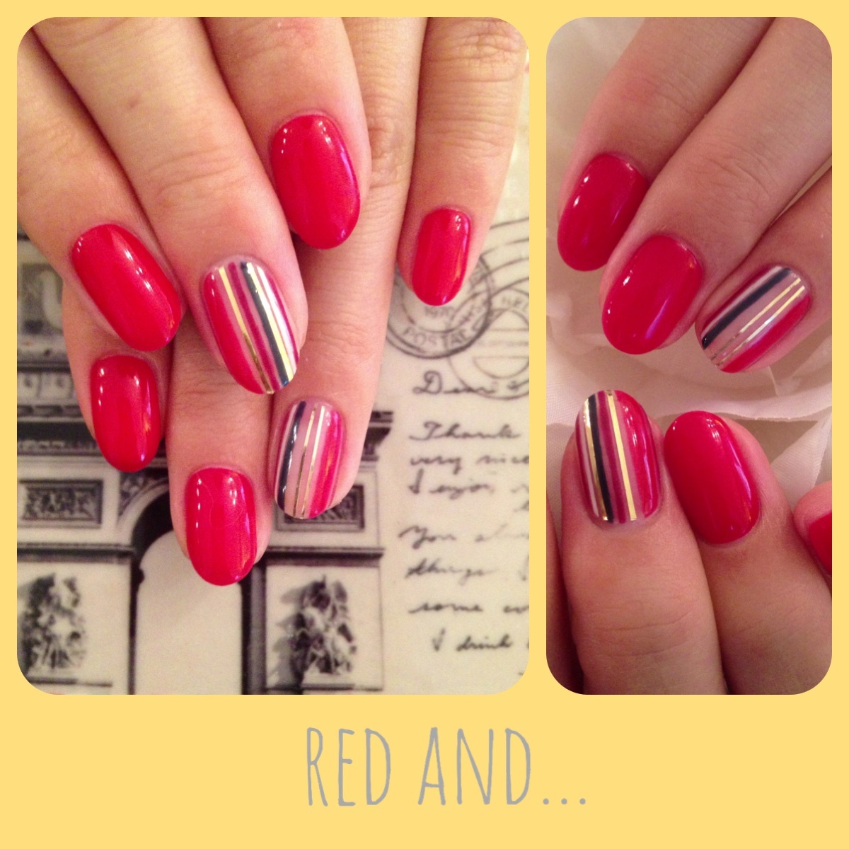 ガーリーな赤色に、ゴールドテープが光るワンポイントストライプ☆