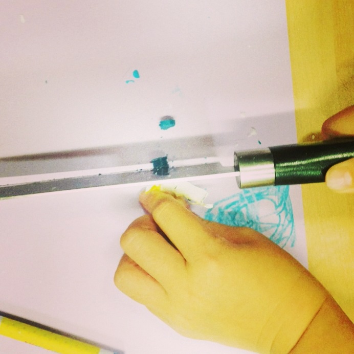 クレヨンを小さく刻みます。