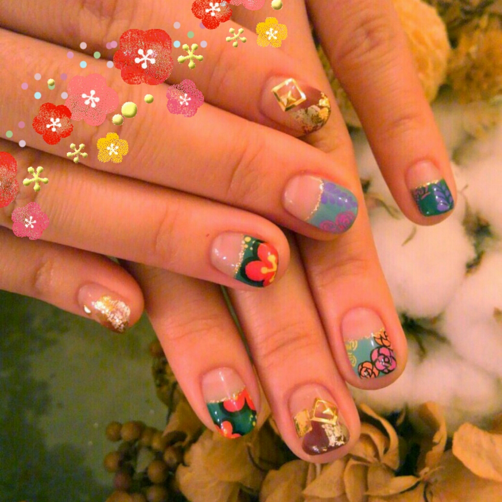 お正月休みは長い休みだし、予定がつまってたり、なんとなくウキウキしたりで皆様少し華やかなネイル♡