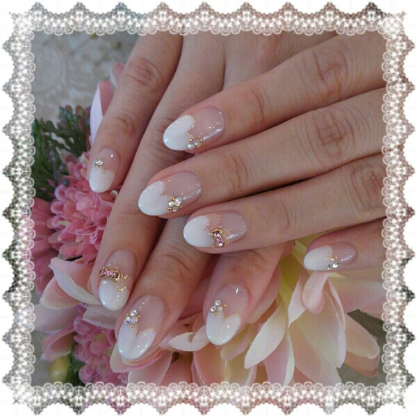 アートがシンプルな分、ベースはハートフレンチで可愛く仕上げてます╰(*´︶`*)╯
