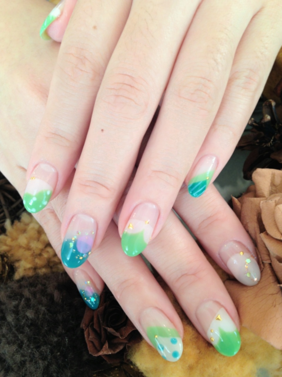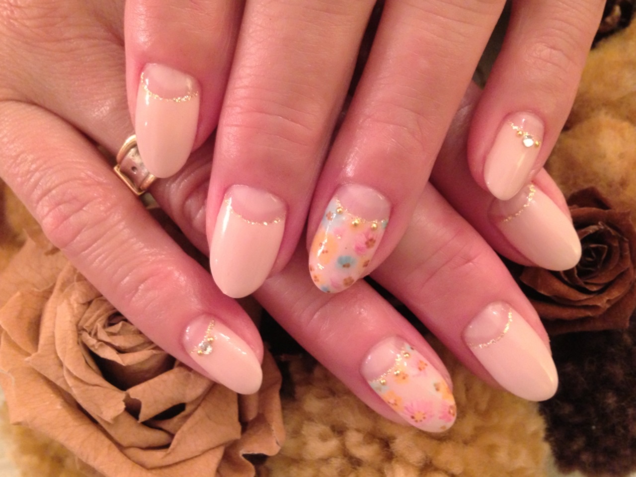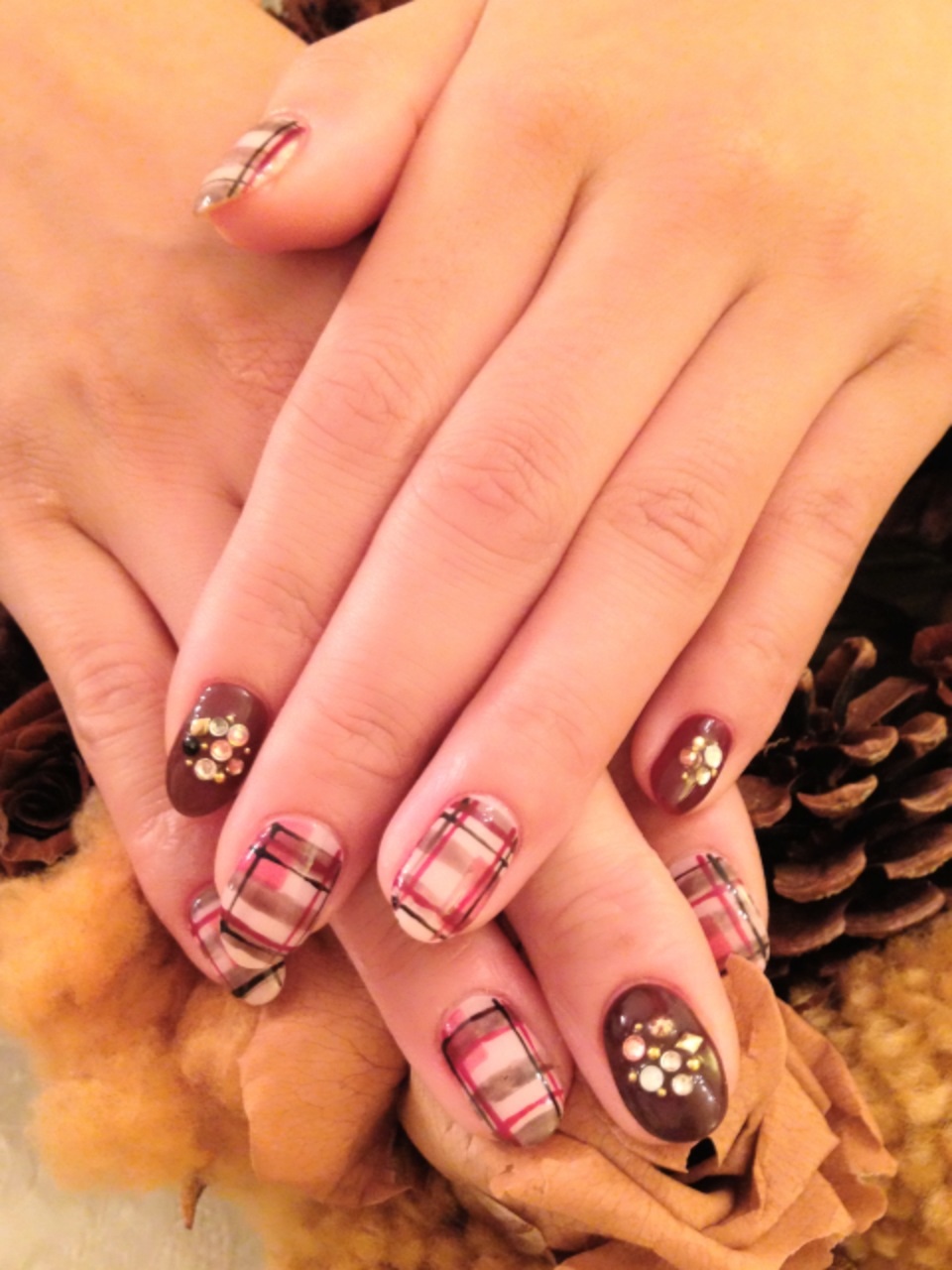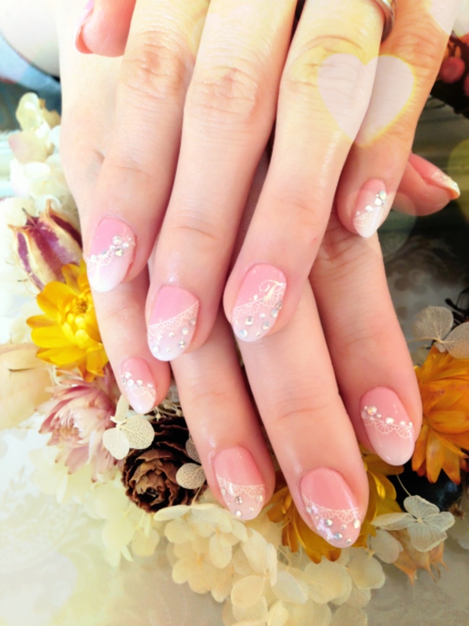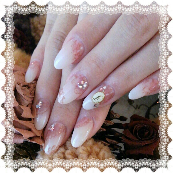 そしてこちらは淡いピンクのグラデーションにブラウンでレース模様が入ってます♡