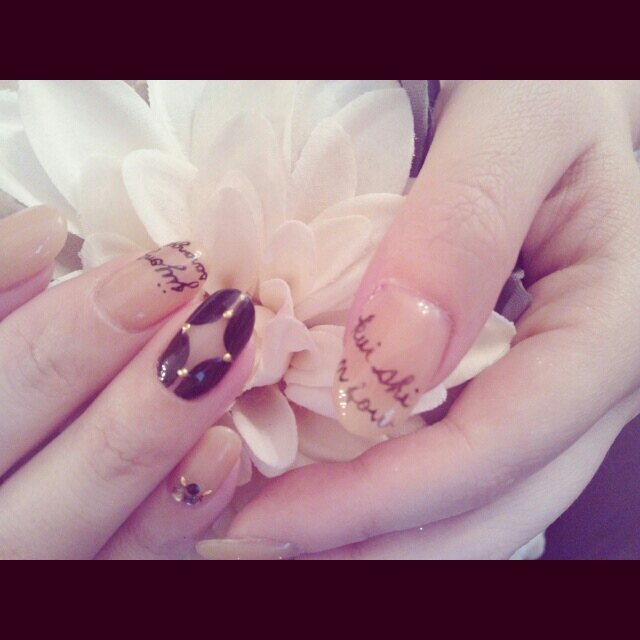 ラクダ色ベースに黒でお花や英字を書いております(´ ºัωºั` )オシャレ