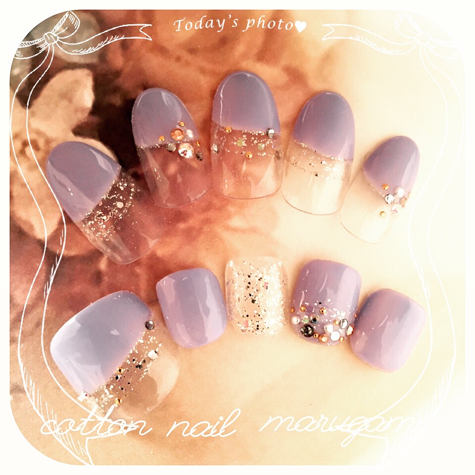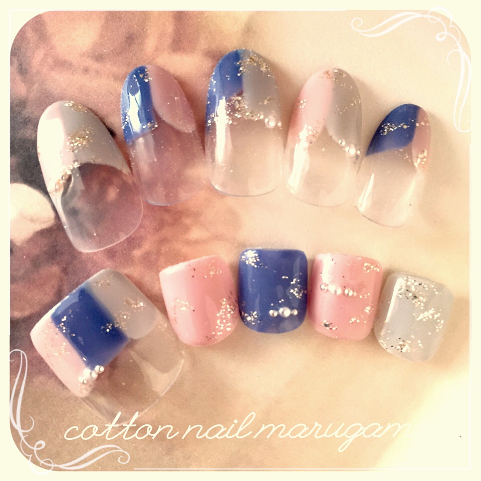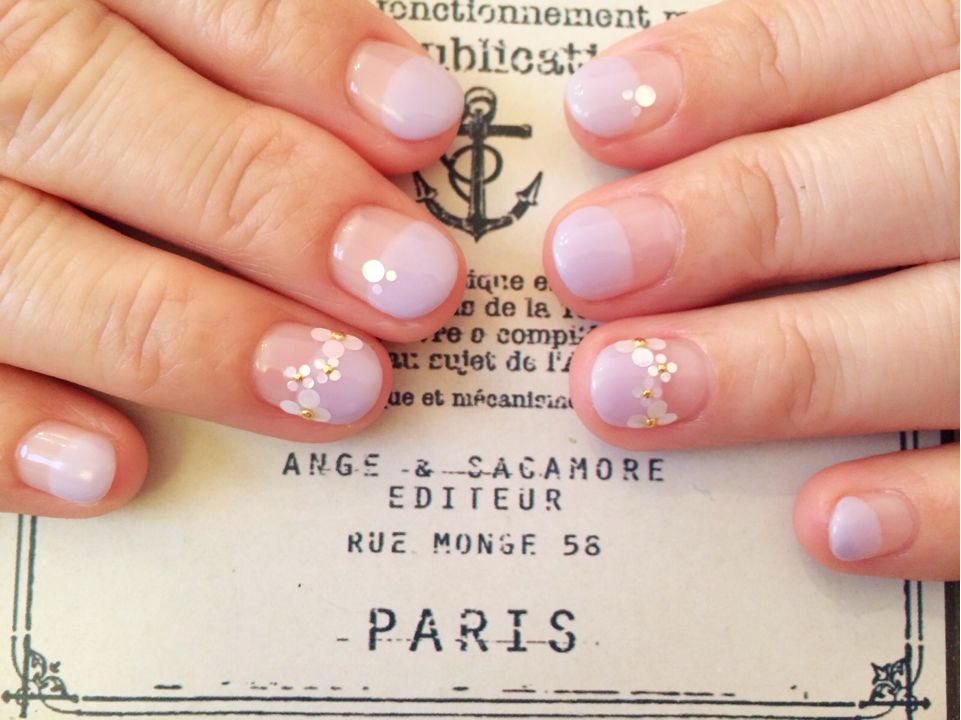 親指のところはクリアにホログラムと、花柄が入っています♪