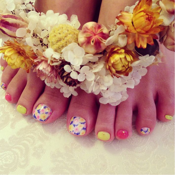 元気なカラーにガーリーなニュアンスフラワーが可愛いです♪♪